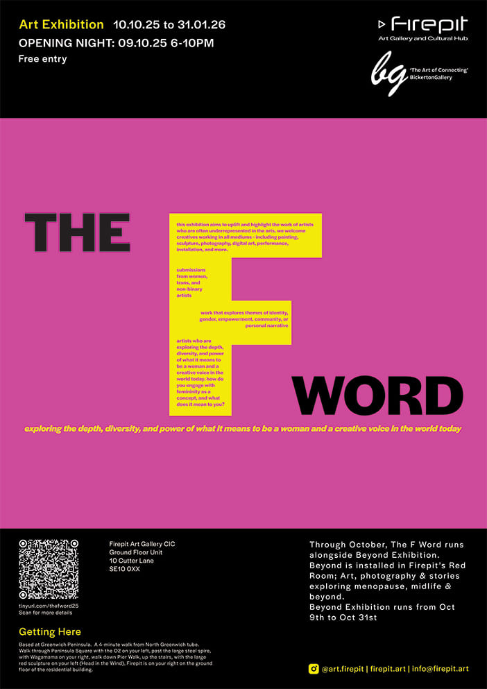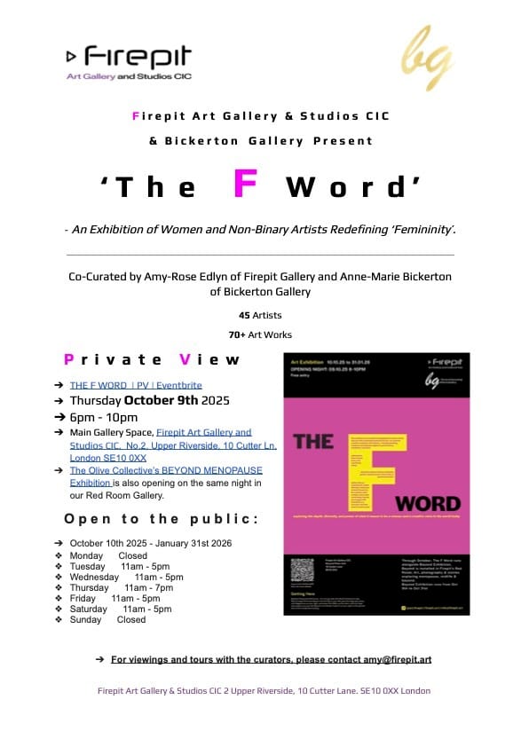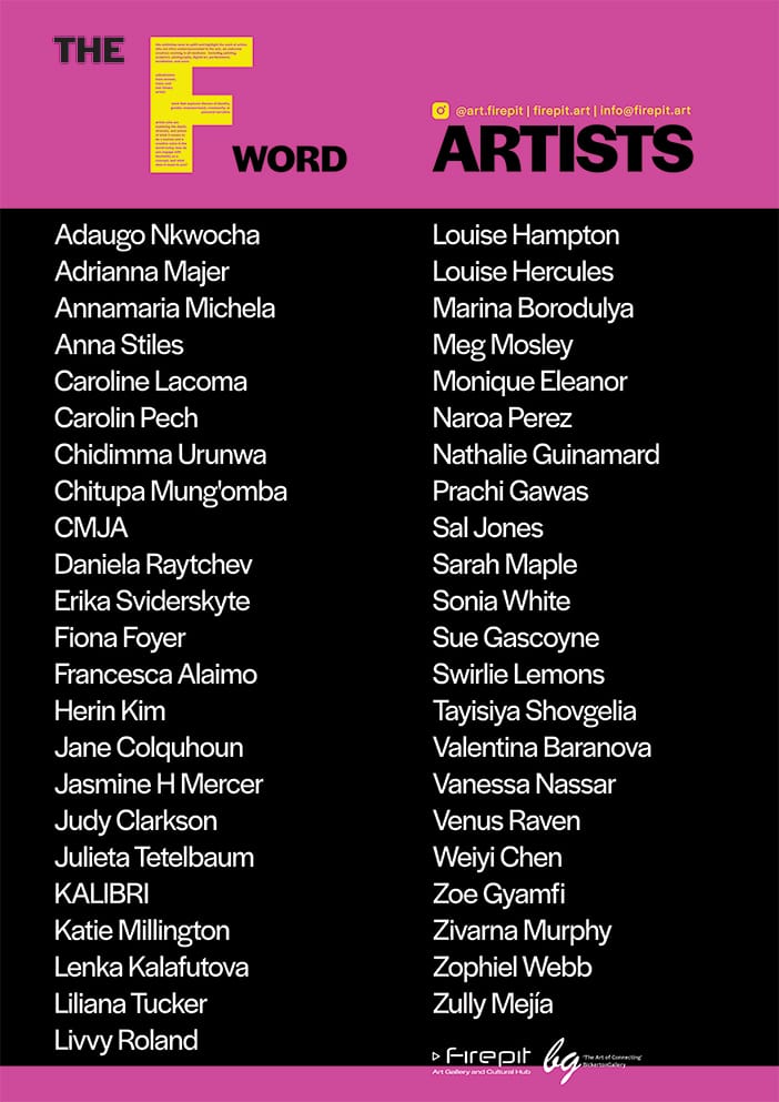 Firepit Art Gallery and Bickerton Gallery warmly invite you to the Private View of The F Word - 'An Exhibition of Women and Non-Binary Artists Redefining ‘Femininity’.