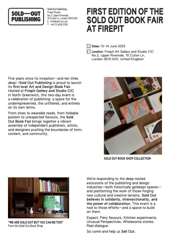 We have a two day takeover of the whole of the gallery space in Firepit. This Friday 13th June and Saturday 14th, it is the SOLD OUT Book Fair.