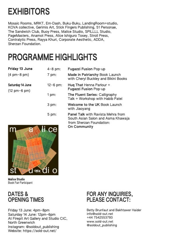 It is a complete two day takeover! Please note gallery is closed (with the exception of workshops) whilst we set up for the book fair. Details are in the images below, if your mail app doesn’t let you see the images, follow this LINK